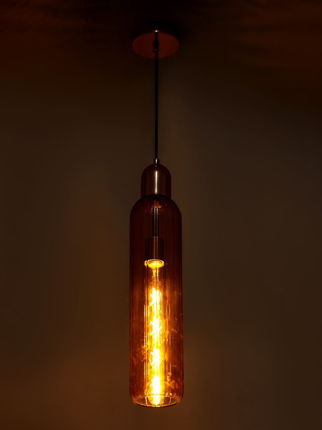 Amber Glass Pendant Light (Long Filament Bulb Included)