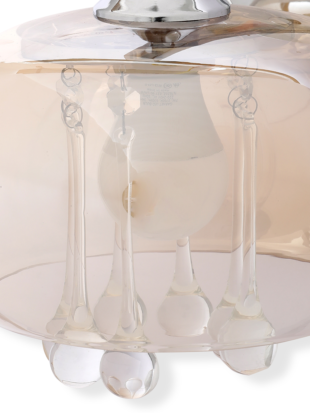Elevate your interiors with the Proudome Amber Glass Wall Light with Hanging Crystal, a stunning combination of elegance and functionality. Designed with a premium amber glass shade and sparkling crystal accents, this decorative wall sconce creates a warm glow that enhances living rooms, bedrooms, dining spaces, and temple decor. Its refined design makes it a versatile choice for both modern and traditional settings.
