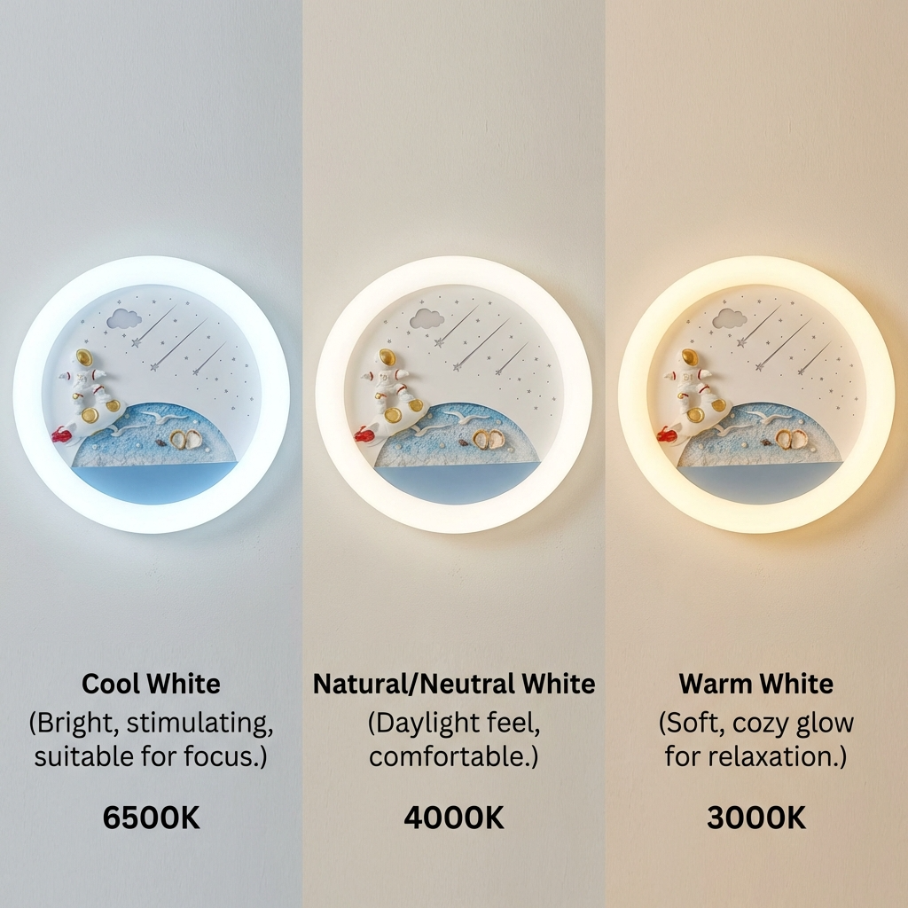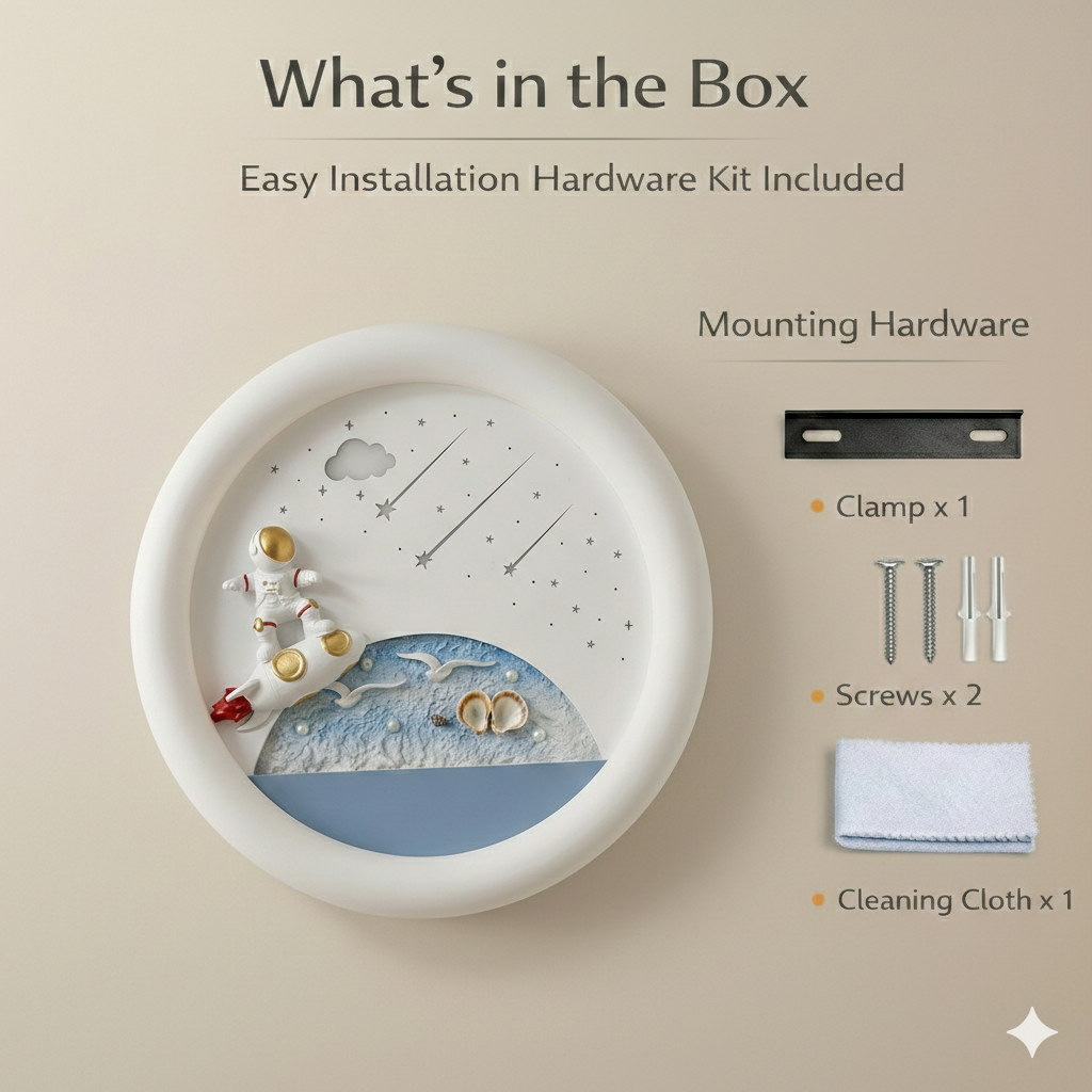 Add creativity, wonder, and gentle illumination to your child’s world with this modern space-themed LED wall lamp.