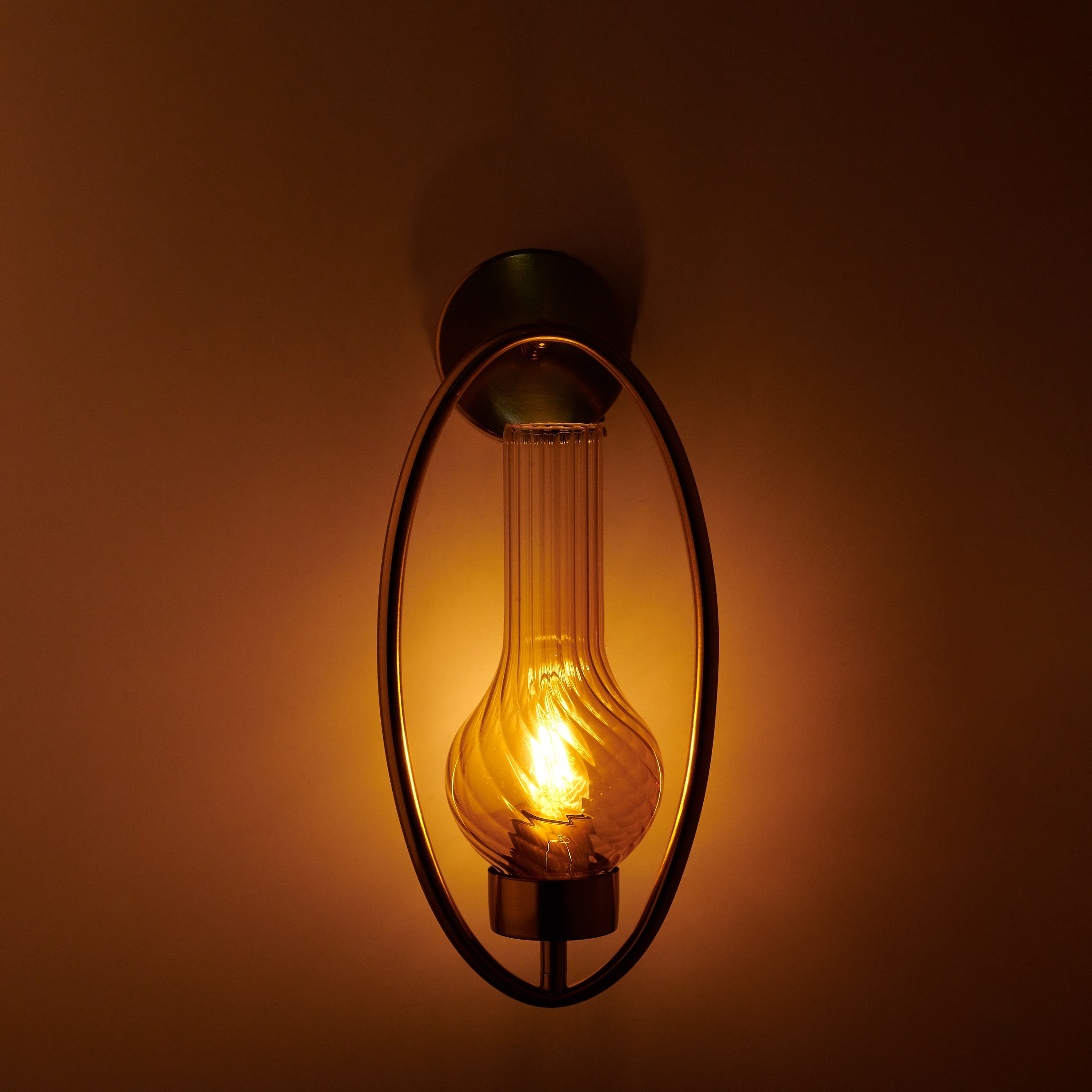 The Aurelia Halo Wall Light blends sculptural elegance with warm illumination. Designed with a refined gold oval frame and a softly curved glass shade, this wall light creates a graceful halo effect that elevates modern and luxury interiors. The warm glow highlights its artistic form, making it a striking accent for living areas, bedrooms, corridors, and boutique interiors.