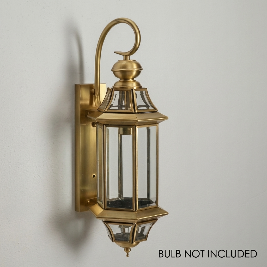 Add a touch of elegance to your outdoor décor with the Proudome Clear Glass Outdoor Wall Light with Golden Holder. Featuring a stylish clear glass shade and a premium golden lamp holder, this decorative wall sconce enhances the beauty of exterior spaces such as gardens, balconies, patios, staircases, and terraces. The clear glass design allows bright illumination while adding a modern and sophisticated look to your walls.