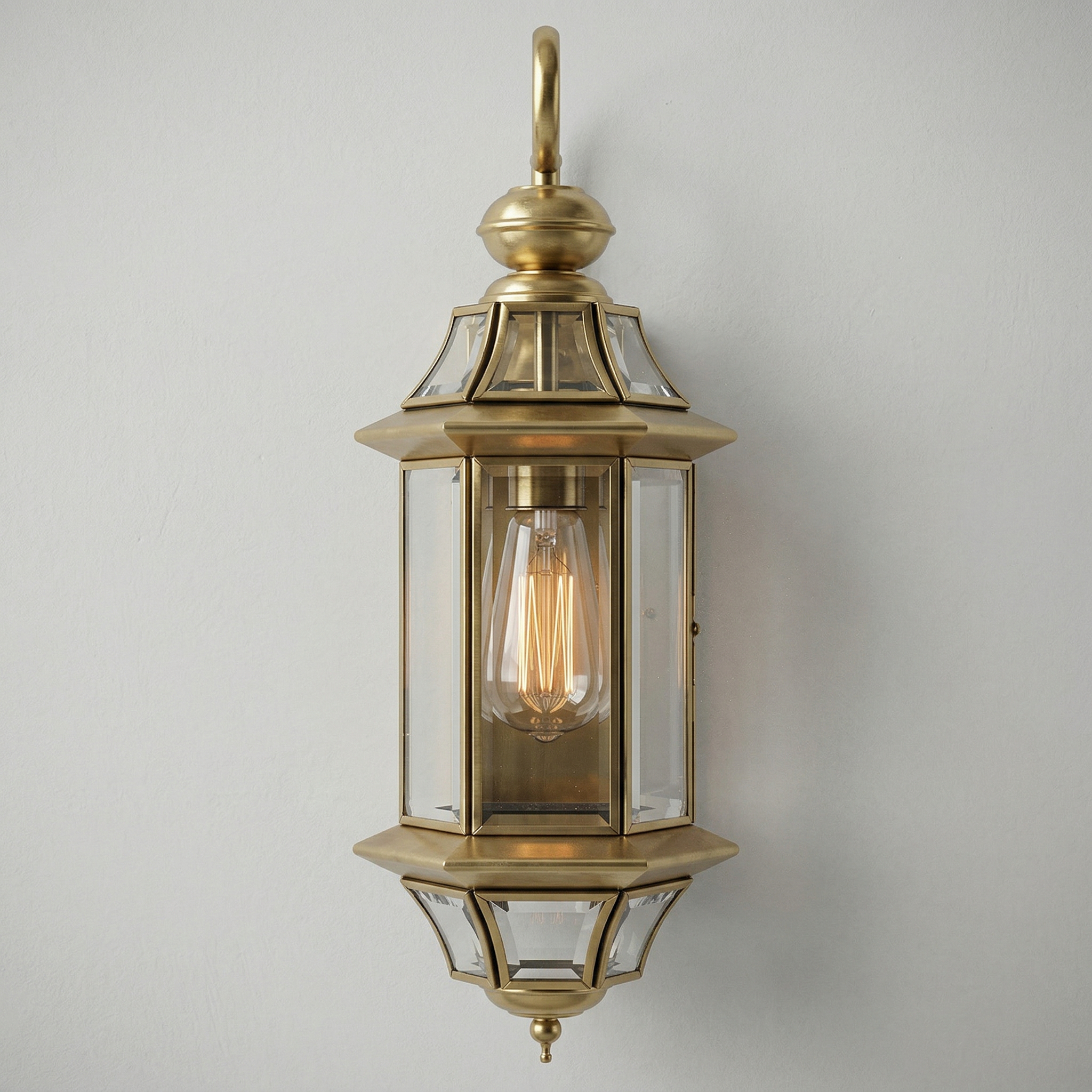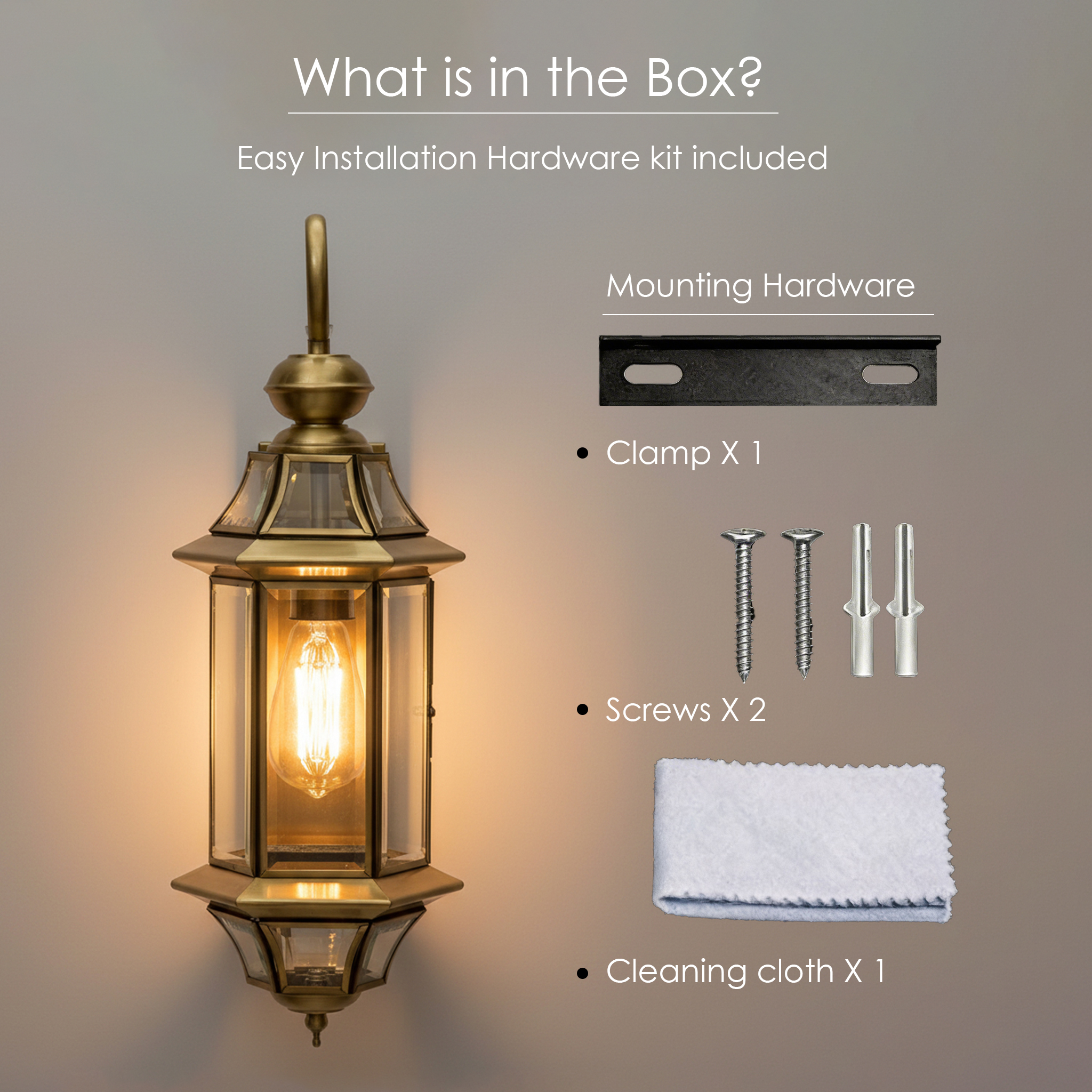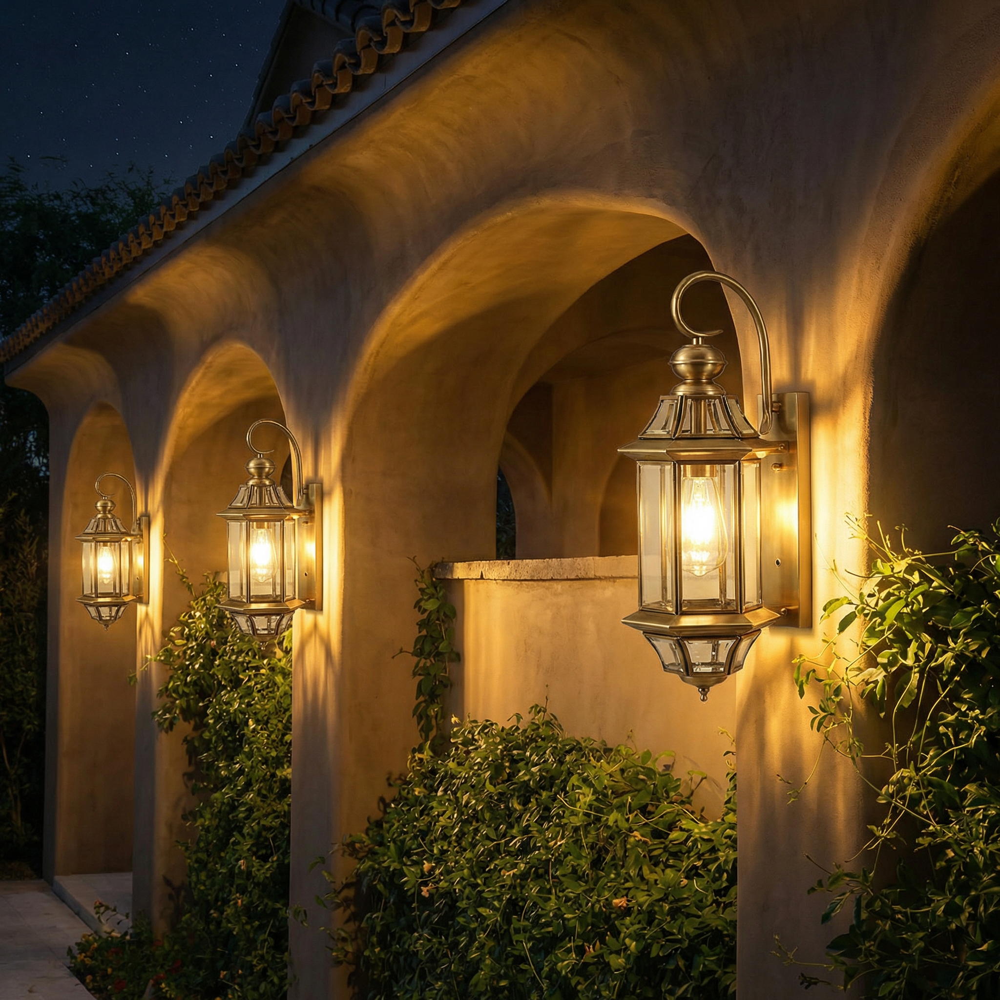 Proudome Clear Glass Outdoor Wall Light with Golden Holder, Decorative Wall Lamp for Garden, Balcony, Patio & Terrace