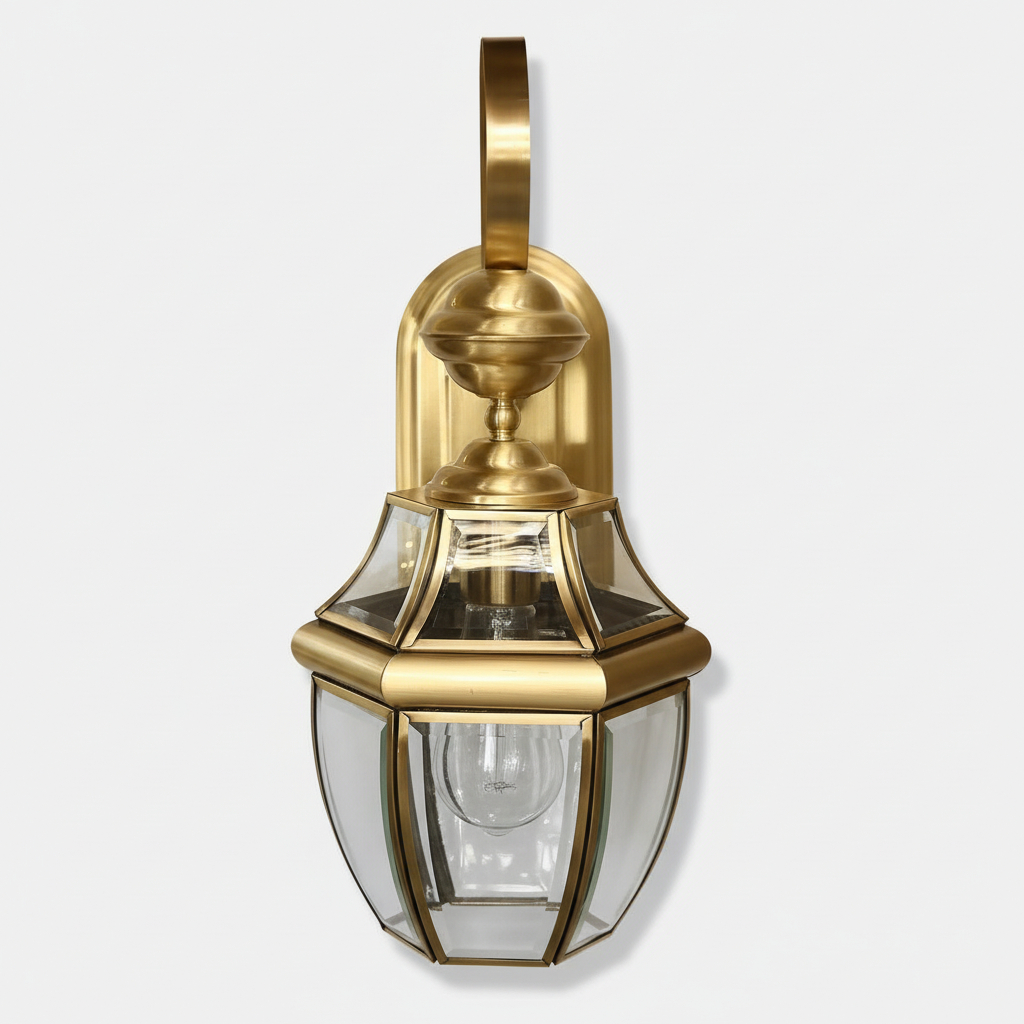 Proudome Clear Glass Outdoor Wall Light Holder, Decorative Metal Wall Lamp for Balcony, Patio, Staircase & Terrace