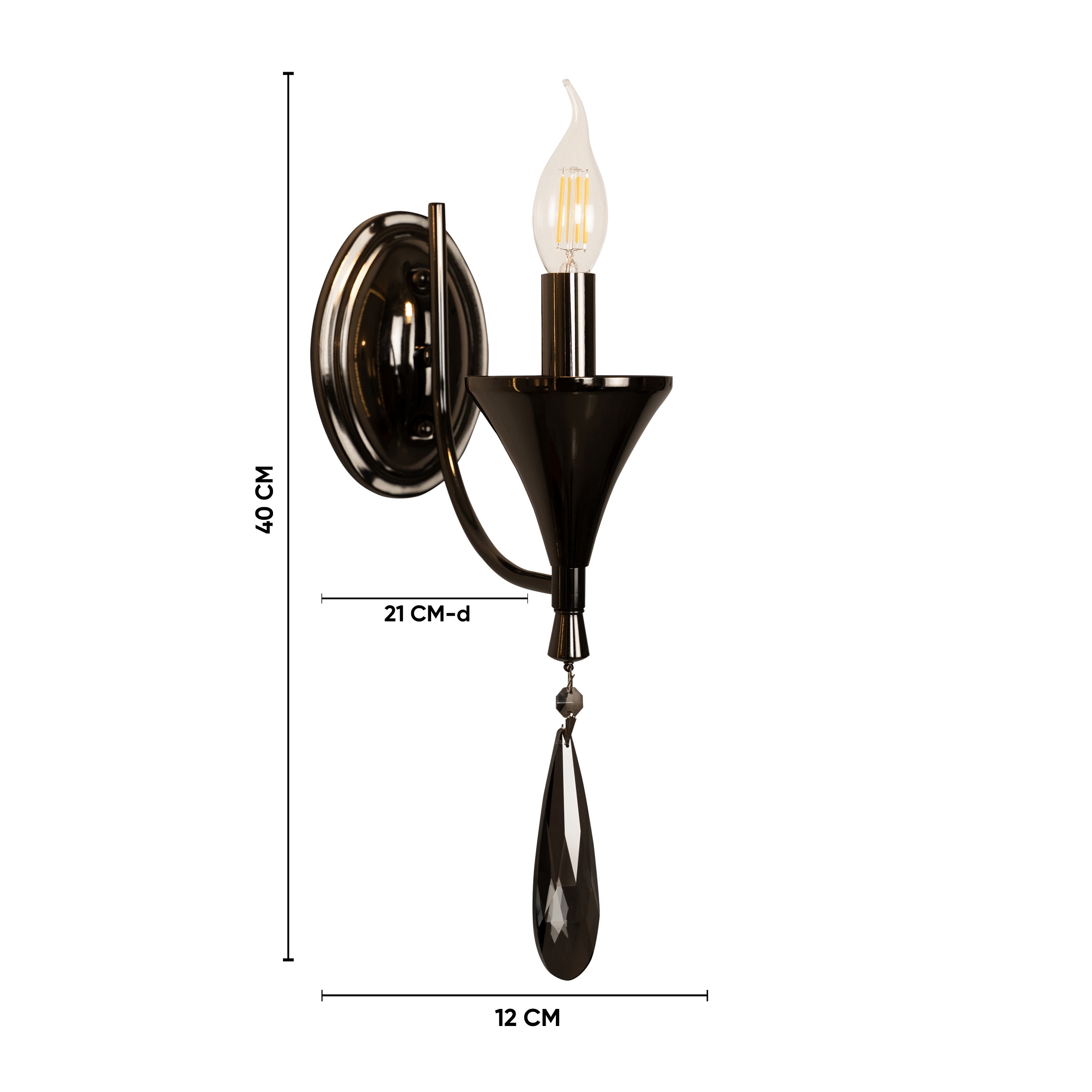 Be the first to review “Glossy Black Wall Light with Hanging Crystal (Bulb Not Included)”