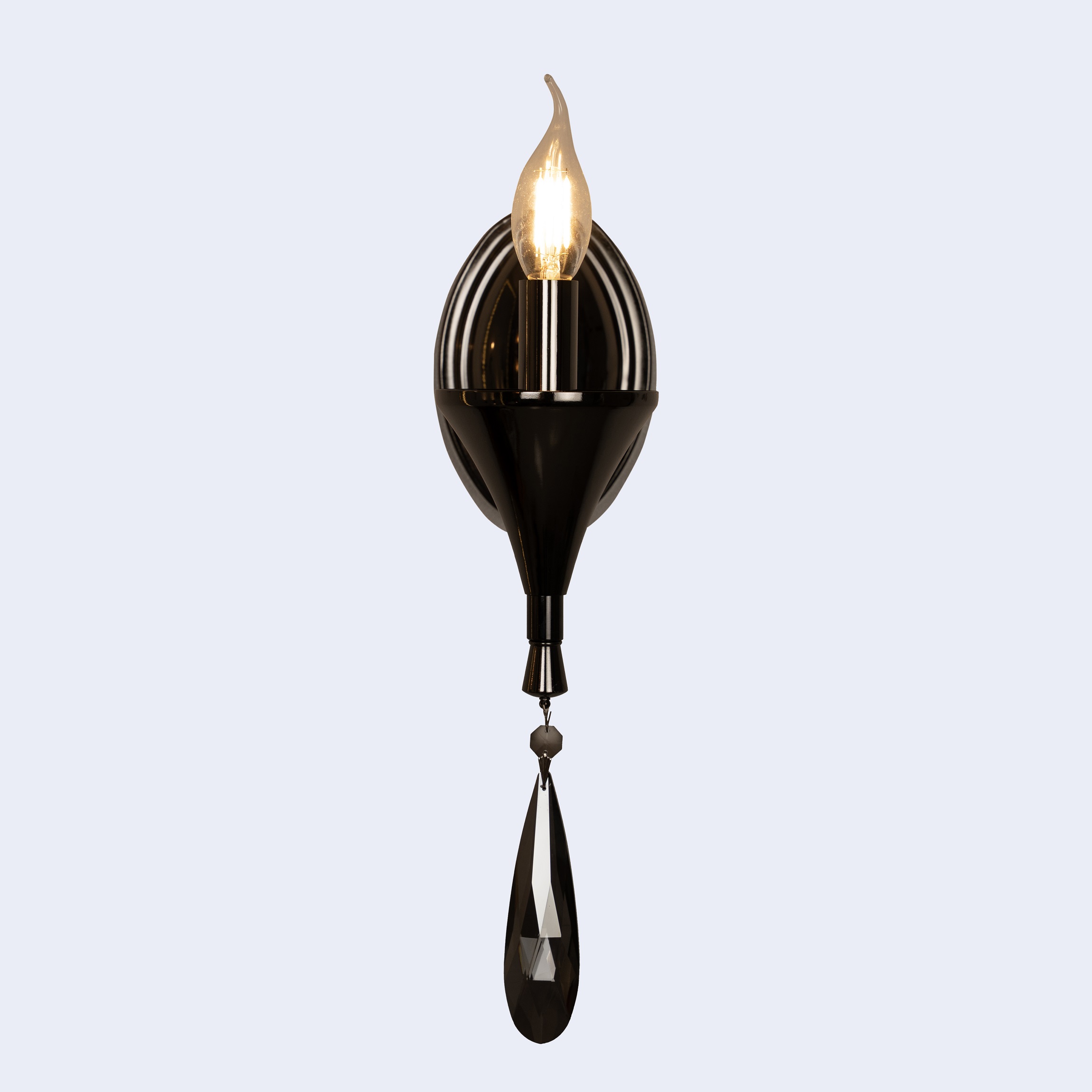 Glossy Black Wall Light with Hanging Crystal (Bulb Not Included)