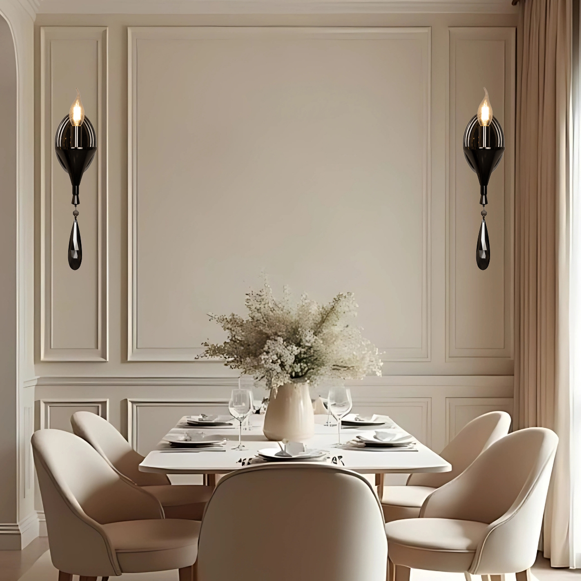 Elevate your interiors with the Proudome Glossy Black Wall Light With Hanging Crystal, a perfect combination of elegance and contemporary design. Featuring a sleek black finish and sparkling hanging crystals, this decorative wall lamp creates a luxurious focal point while diffusing warm, ambient light. Ideal for the living room, bedroom, dining area, or foyer, it enhances both modern and classic interiors. Crafted from high-quality materials, this indoor wall sconce ensures durability and long-lasting beauty. Bulbs are not included, allowing you to select the ideal lighting for your space.