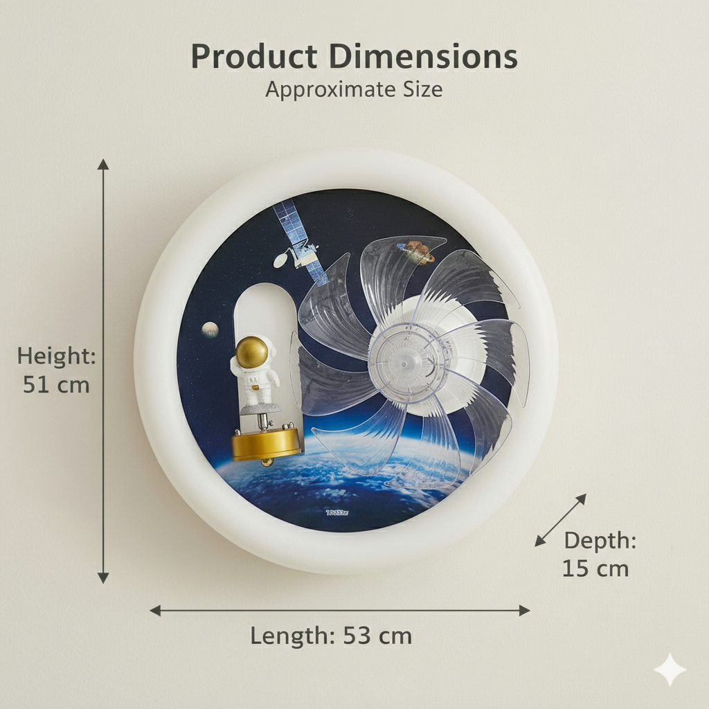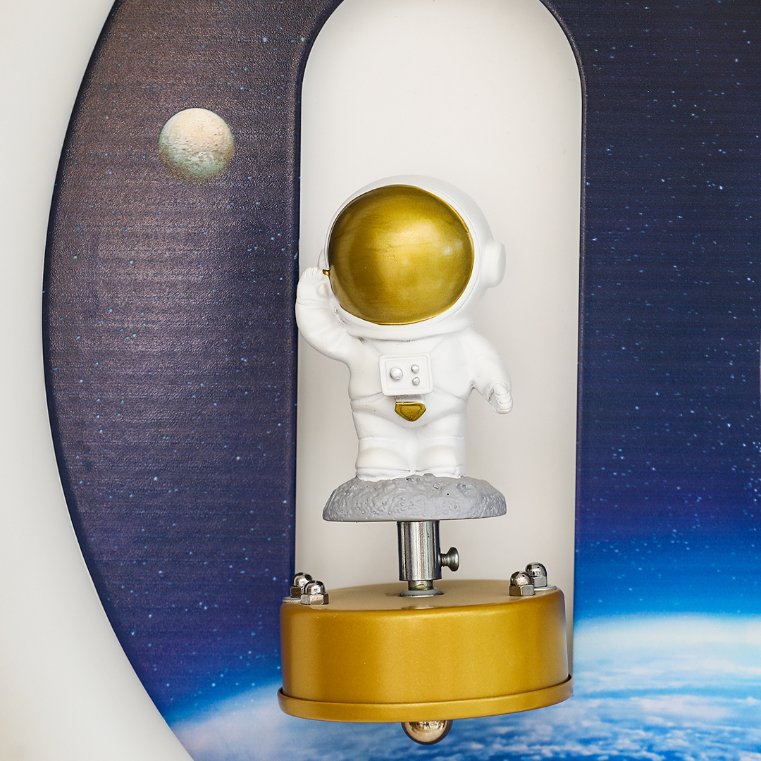 Add a touch of imagination and cosmic charm to your child’s space with the StarGlide Astronaut Wall Light. Designed with a playful astronaut figure set against a space-themed background, this decorative LED wall lamp enhances kids interiors with both style and soft illumination. The integrated LED light provides a warm, soothing glow that is gentle on young eyes, making it ideal for kids bedrooms, nursery areas, study corners, and play zones. The propeller-style design element is purely decorative, created to elevate the visual appeal without any moving function. Its compact wall-mounted design helps keep the area neat while adding a fun focal point. Perfect for themed kids decor, this astronaut wall light also makes a thoughtful gift for birthdays, baby showers, and special occasions. With its unique design and calming light output, it creates a cheerful, dreamy atmosphere that kids will love.