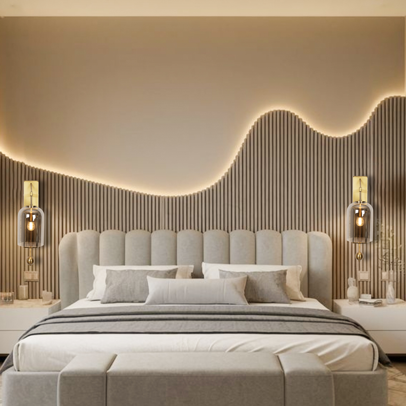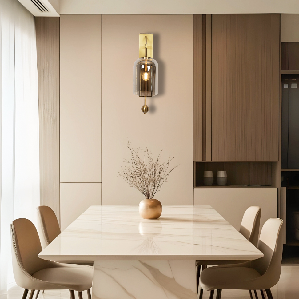 Elevate your interiors with the Proudome Smokey Glass Wall Lamp, a perfect blend of elegance and functionality. The smokey glass shade adds a sophisticated touch while diffusing light beautifully to create a warm, ambient glow. Ideal for the dining room, living room, bedroom, or kids? room, this decorative wall sconce enhances your decor with its stylish and modern design. Made from premium materials, it ensures long-lasting performance and easy maintenance, making it an ideal choice for contemporary indoor lighting.