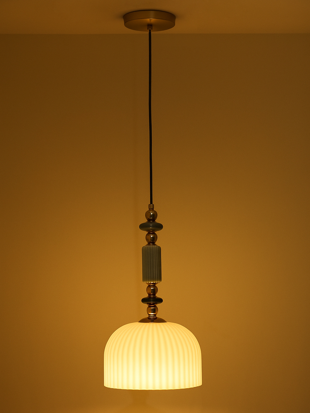 Enhance your interiors with the Proudome White Glass Hanging Light, a sleek and stylish pendant lamp designed to add charm and warmth to any indoor setting. Featuring a smooth white glass shade and a minimalistic design, this decorative light creates a cozy ambiance perfect for bedrooms, dining areas, living spaces, or bar counters. Ideal for modern and contemporary interiors, it blends elegance with soft illumination, making it a beautiful focal point in your home decor.