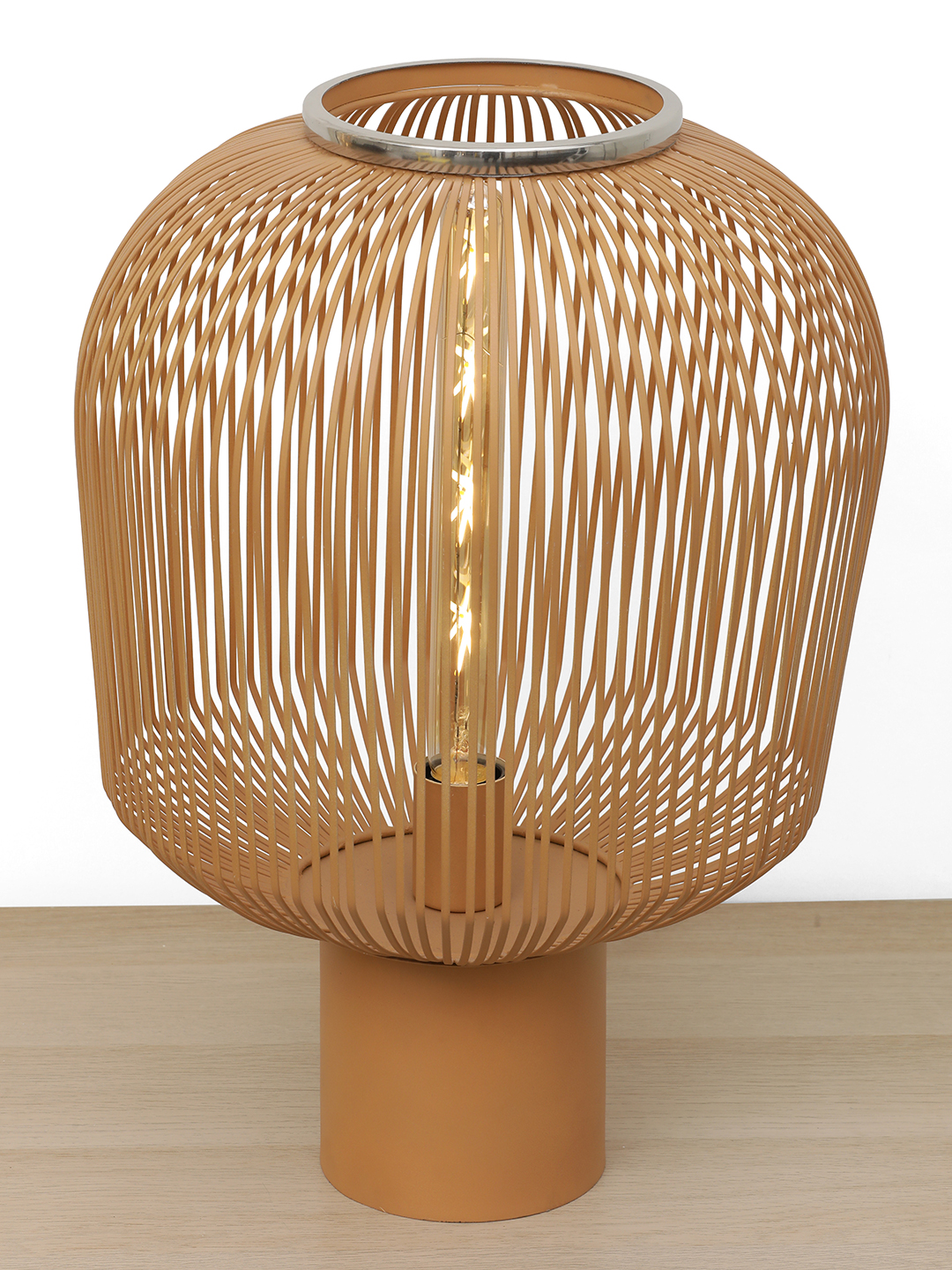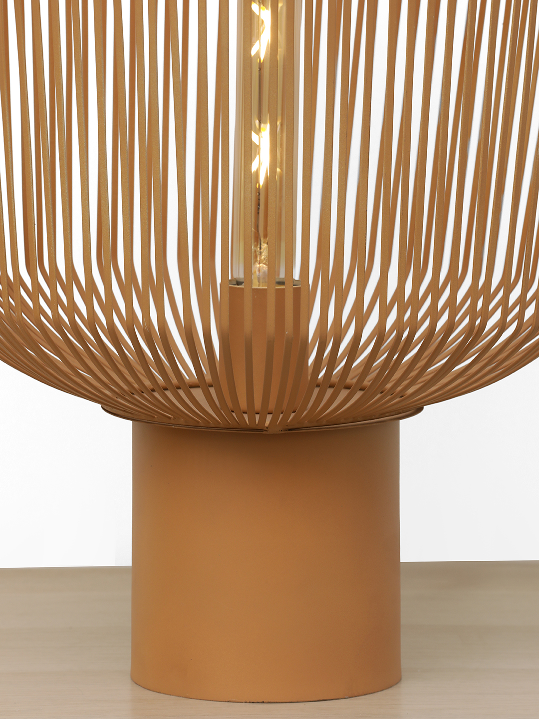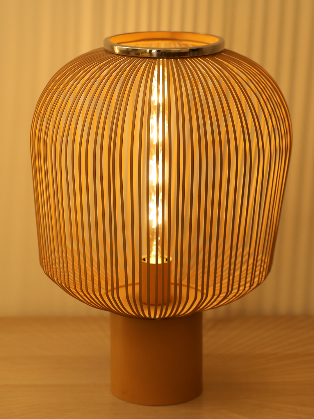 Add a warm, contemporary touch to your space with the Terra WeaveGlow Table Lamp. Designed with a sculptural metal wire shade in an earthy tone, this lamp creates a beautiful play of light and shadow that instantly elevates your decor. The open-frame design allows the bulb to glow softly through the vertical lines, making it ideal for ambient and accent lighting. Its solid cylindrical base provides stability while maintaining a clean, modern look. Perfect for living rooms, bedrooms, side tables, cafes, or modern interiors, this lamp blends artistic design with everyday functionality, making it both a lighting piece and a decor statement.